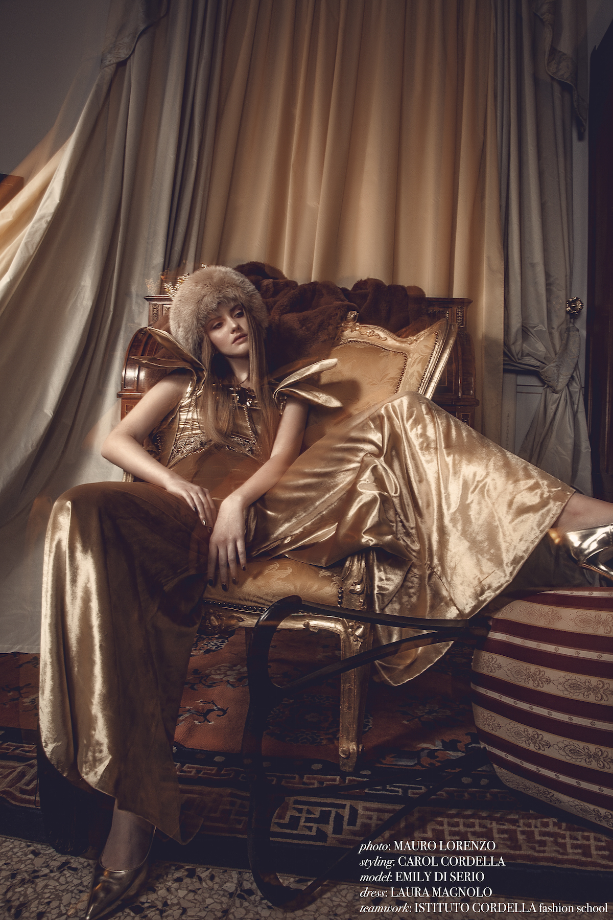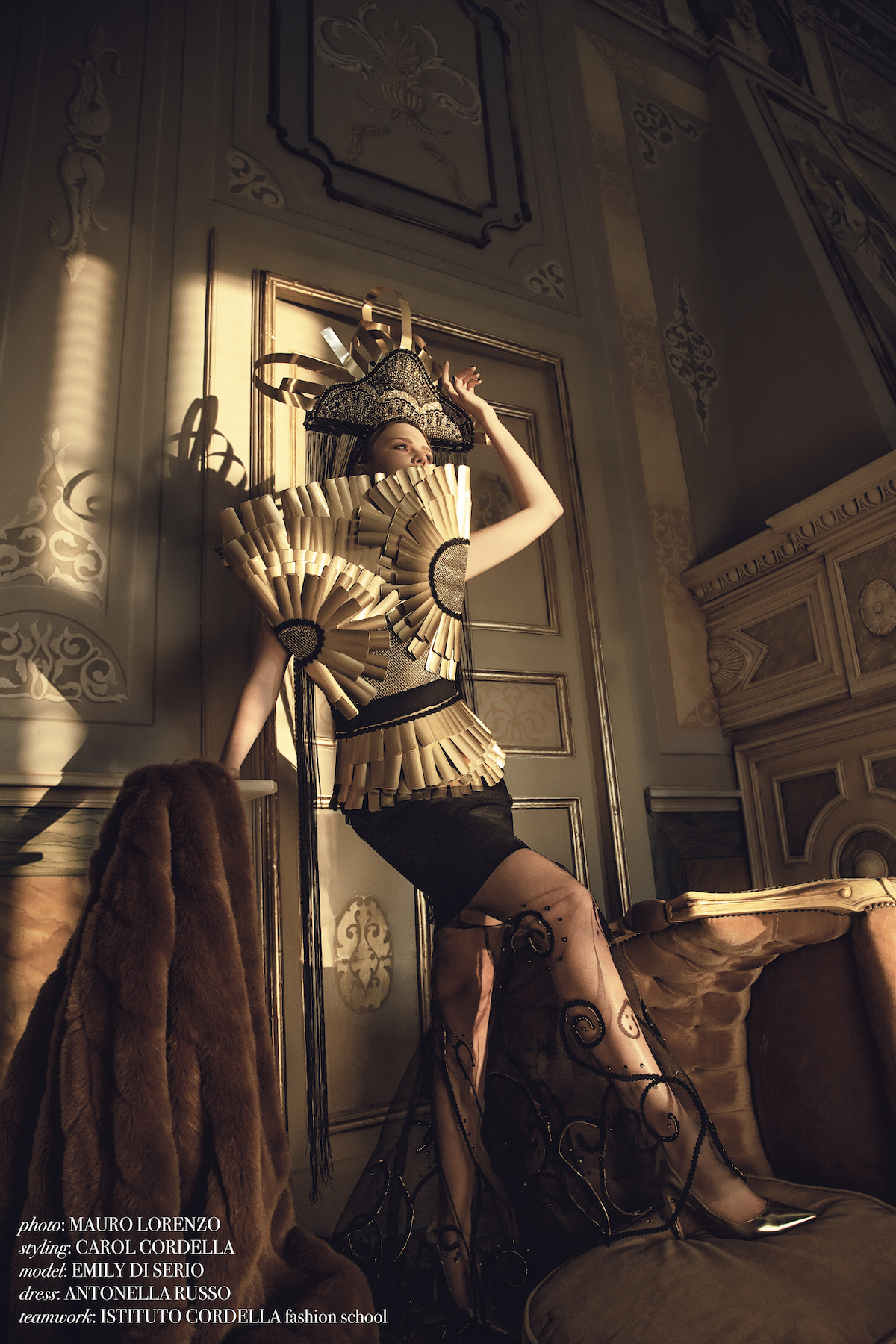 Fashion editorial scattato in Puglia in villa del '700 con arredi e componenti originali, con abiti haute couture. Hat and accessories: Matteo Seclì, Claudia Hasa, Antonella Russo, Marina Melacca, Laura Magnolo, Desiree De Matteis, Sara Cucci.