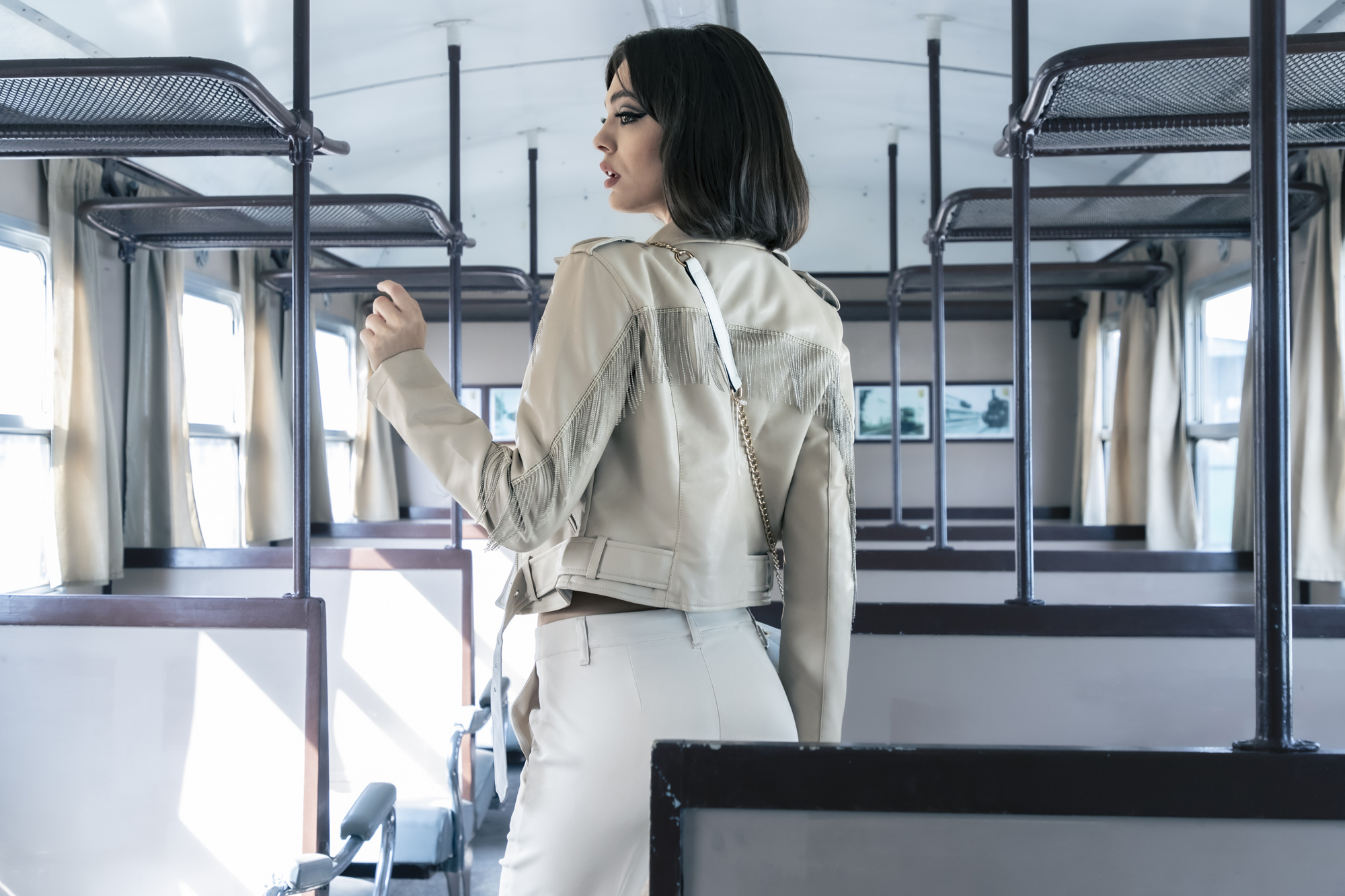 MOITIE' fashion campaign fall-winter 22-23. Photographer Mauro Lorenzo Make-up and Hair Visual Tag Agency Model Giorgia Stylist Carol Cordella Location Puglia Location Lecce (Italy) Salento (Apulia, Italy) Mauro Lorenzo fashion photographer Fashion advertising fashion designer Advertising woman young teen train Moodboard jacket Collection Fall / Winter coat handmade madeinitaly hat emotional Inspiration cinematic moitiè brandidentity brand glass geometric giacca pantalone fotografiaitaliana fotografia di moda fotografia commerciale